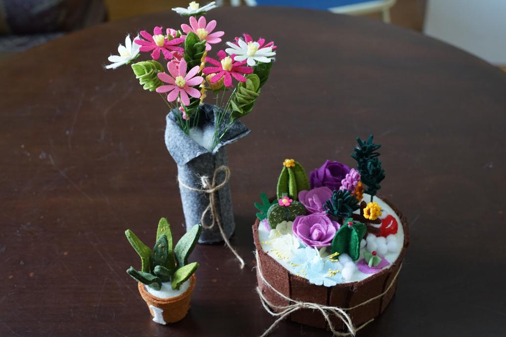 9月9日下午,校团学干部、各二级学院志愿者30余人通过制作手工植物表达对老师们的情意。同学们或用剪刀裁剪出花朵和叶片的形状,或穿针引线缝制出花盆等容器。通过2个多小时的共同协作,一盆盆色彩鲜艳的盆栽终于完工了。之后,同学们把亲手制作的手工植物送给老师们,希望带给老师们一份好心情。