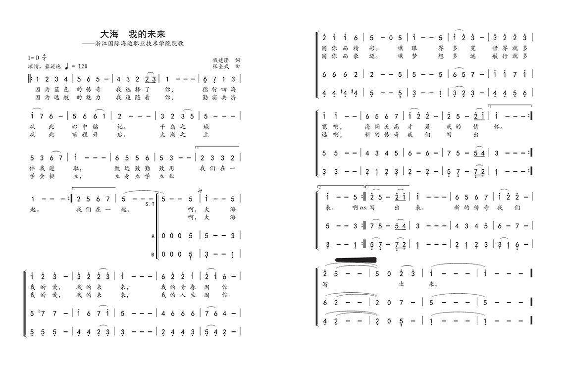 校歌是校园文化的重要组成部分,是学校办学理念、校园精神和学校特色的诗意表述,也是学校内涵的形象展示,更是体现师生员工精神风貌的重要载体。经过三年多的广泛征集与修改完善,我校校歌《大海,我的未来》已经创作完成,将在明天下午举行的学校2018年党建廉政文化节暨第五届艺术节闭幕式上首唱。