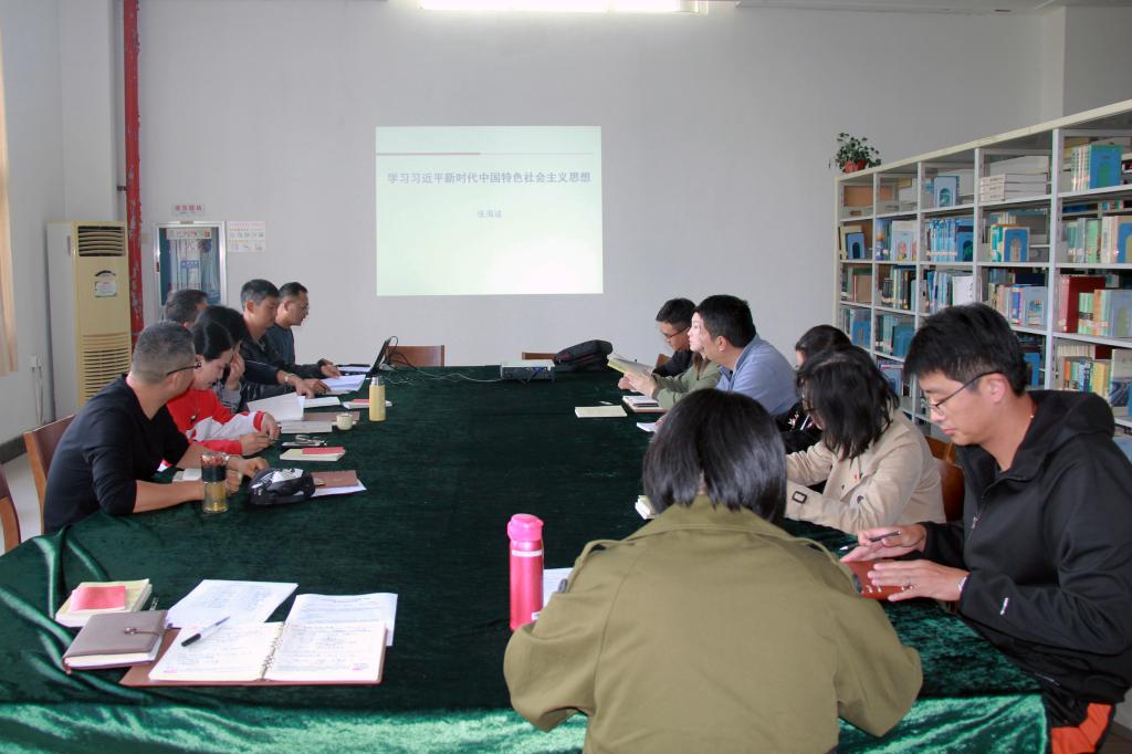 社科体艺部党总支书记张海波以《学习习近平新时代中国特色社会主义思想》为题,从习近平新时代中国特色社会主义思想的形成背景、主要内容和指导具体工作的方向展开,向全体党员展示和剖析了中华人民共和国发展70年的奋进史。