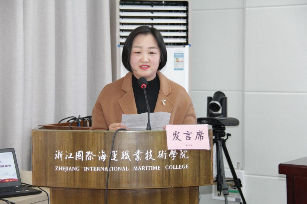 港口管理学院归国留学人员周小燕代表学校侨留联会会员发言,她表示将发挥自己所长,推进校侨留联会更好地成长,并以此为纽带,为学校、为舟山做出自己的贡献。