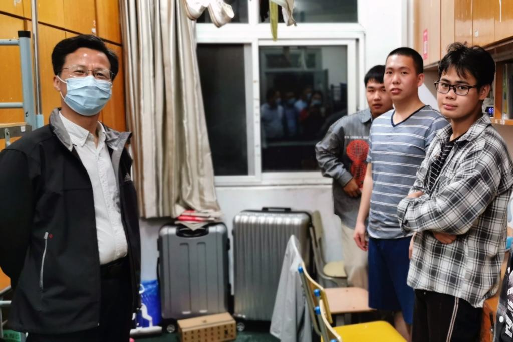为切实做好新冠肺炎疫情防控工作,确保第一批返校生困有所帮、难有所助,5月7日晚,校党委副书记、校长吴中平和党委委员、副校长曹志斌带领学生处、各二级学院负责人等,深入走访学生寝室,与学生亲切交谈,了解学生返校后的需求。