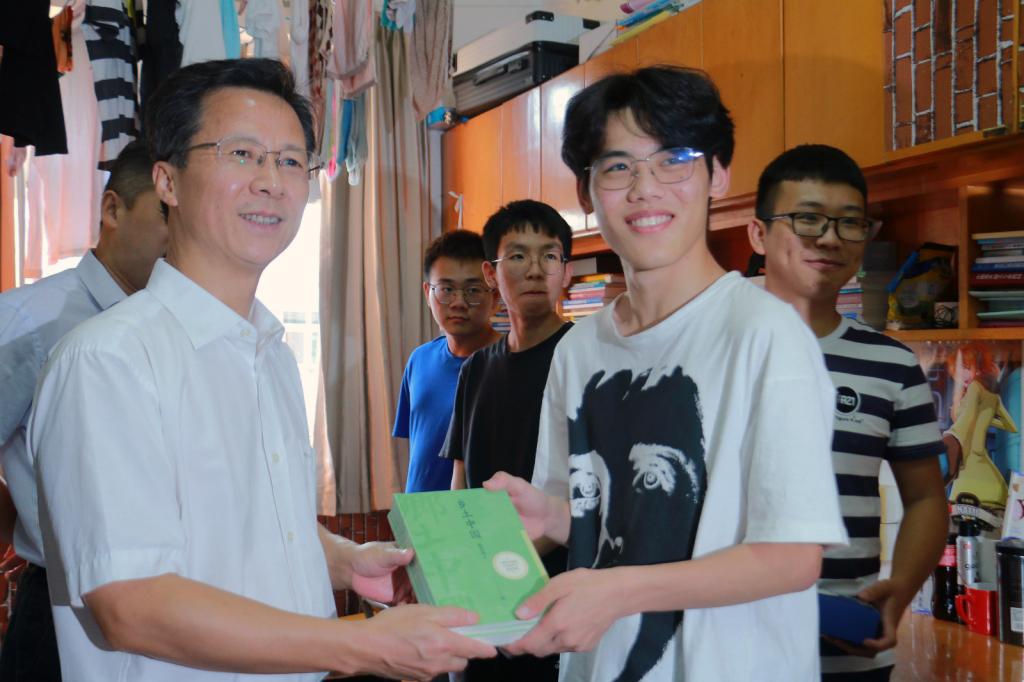 下午4点半,吴中平、曹志斌和校团委、二级学院相关领导一同前往宿舍慰问学生。吴中平一行仔细查看了寝室的基础设施、环境卫生、消防安全情况,深入各二级学院寝室与学生进行了亲切交流。吴中平详细询问了同学们的生活、学习情况,叮嘱同学们国庆假期记得给家人报平安,如果在学习和生活上遇到了困难要及时向学校和老师反馈,学校会尽最大的努力帮助大家解决困难。他还向同学们送上月饼和精心挑选的书籍,并表达了节日问候和深切关怀。吴中平校长赠送的书籍《乡土中国》是一部饱含家国情怀的经典力作,希望海运学子通过阅读这本《乡土中国》,对祖国有更深厚的感知,对自己肩头的责任有更深刻的感悟。