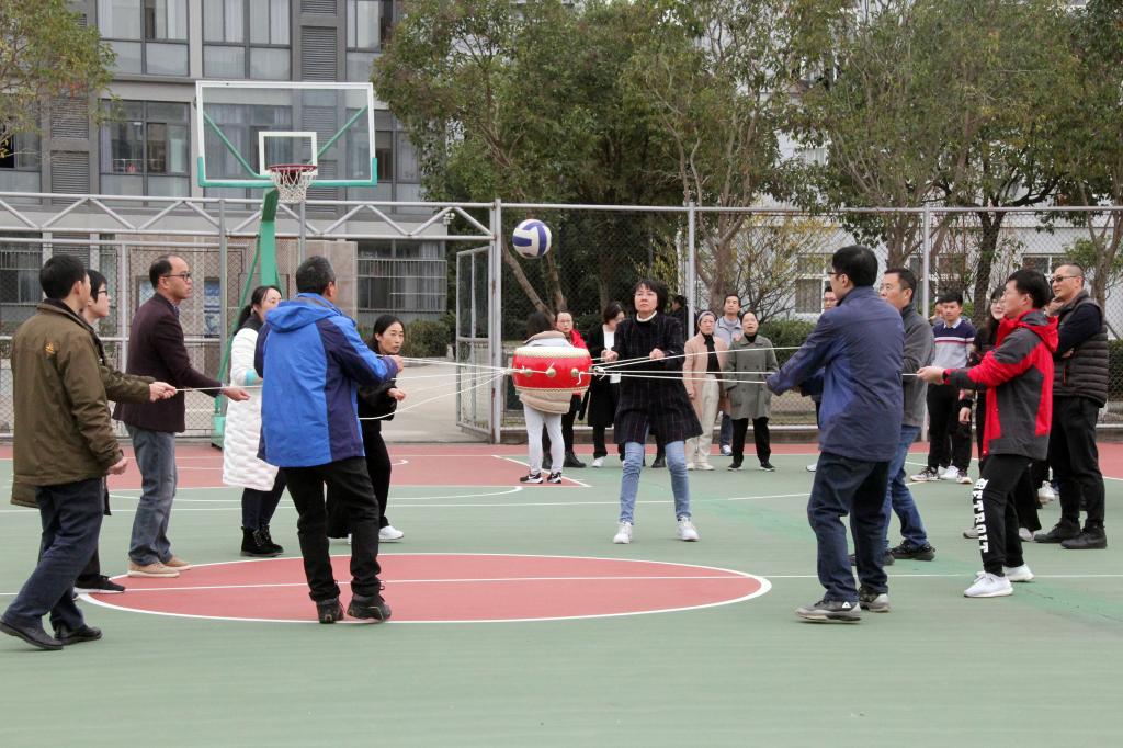 本着“友谊第一、比赛第二”的原则,以二级工会为单位组队的代表队进行了立定跳远、1分钟跳绳、平板支撑、飞镖、男子引体向上、男子俯卧撑、女子仰卧起坐、 女子夹玻璃球等8个个人项目和双腿夹排球接力、同心鼓、跳长绳、拔河等4个团体项目的比赛。虽然学校运动场建设场地受限,但依然挡不住全体教职工积极参与比赛的火热之情。教职工们热情高涨,篮球场上加油助威,呐喊声此起彼伏,运动员们奋力拼搏、团结协作,表现出良好的团队合作精神和强烈的集体荣誉感。