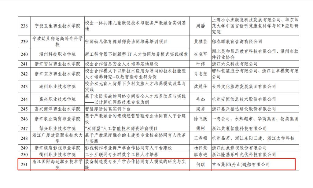 我校申报的现代航运人才培养产教融合基地成功入选省高等学校省级产教融合示范基地项目;装备制造类专业产学合作协同育人模式的研究和实践成功入选省级产学合作协同育人项目名单。这也是继2020年10月我校3个项目列入省2019-2020年度产教融合“五个一批”名单后传来的又一喜讯。