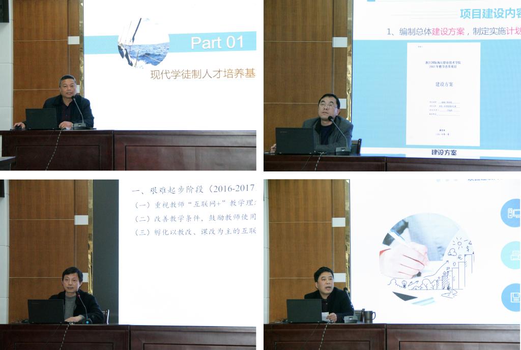 各教学单位首先汇报了2017年以来开展的“一院一试点”教学改革项目实施情况和取得的成果;其次结合“督导评估指标体系”从产教融合、“三教”改革、学生成长、社会服务等四个方面对2020年度教学工作进行了总结;最后结合“提质培优行动计划”提出了2021年教学单位的教学工作思路和阐述了要推进、孵化的各类教学成果项目等。