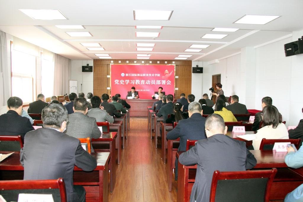 3月29日上午,学校召开党史学习教育动员部署大会,深入学习贯彻习近平总书记在中央党史学习教育动员大会上的重要讲话精神,认真落实党中央、教育部党组和浙江省委、舟山市委、省教育厅党委等有关部署,对全校开展党史学习教育以及庆祝建党百年相关工作进行动员部署。