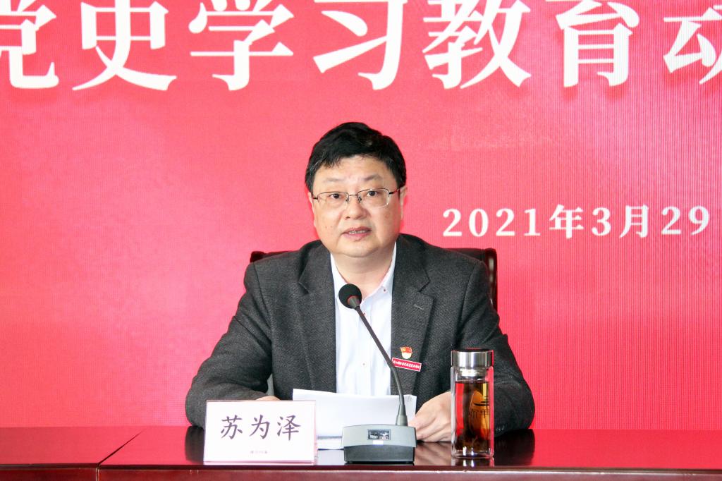 苏为泽书记要求,要领会精神、落实要求,充分认识开展党史学习教育的重大意义。开展党史学习教育,是巩固深化“不忘初心、牢记使命”主题教育成果的“继续篇”;是从党的百年历程中汲取智慧和力量的“营养剂”;是强化党性锻炼的“磨刀石”;是打造高素质干部队伍的“必修课”。要聚焦重点、明确目标,高质量高标准开展党史学习教育。坚持学史明理,感悟思想伟力;坚持学史增信,增强历史自信;坚持学史崇德,赓续奋斗精神;坚持学史力行,务实担当作为。要加强引领、统筹推进,着力提高党史学习教育成效。全校师生要深化思想认识,提高政治站位,通过精心抓好专题学习,扎实开展“我为群众办实事”实践活动,始终坚持两手抓两促进,积极营造浓厚学习氛围,切实提高党史学习教育成效。要强化领导、守正创新,确保党史学习教育各项任务圆满完成。各部门、各单位要切实增强责任感和紧迫感,加强组织领导,精心谋划部署,认真组织实施,高标准高质量开展好党史学习教育。