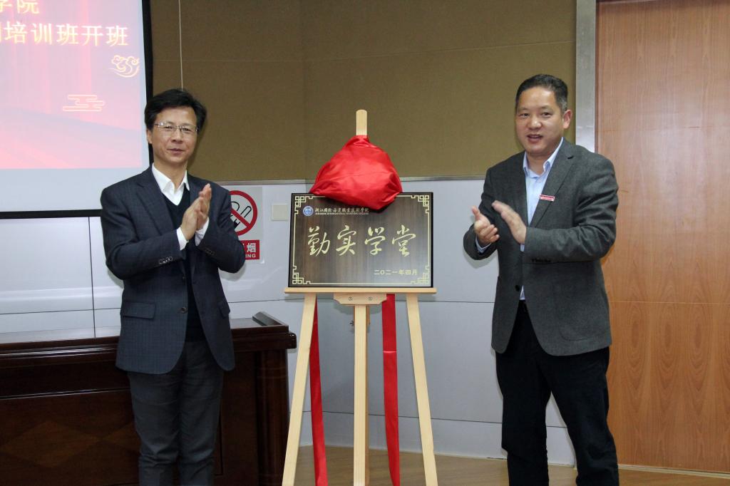 仪式上,吴中平校长与曹志斌副校长一起为“勤实学堂”揭牌后致辞。