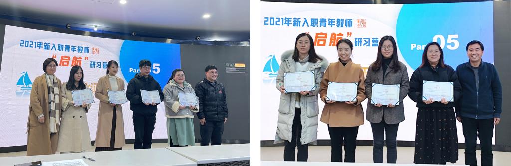 本次“启航”研习营采用校本培训与在线学习、理论授课与实践指导相结合的方式,对每个研习环节设置专题实践作业并进行过程性考核,强调对新入职教师的课程整体设计、课堂单元设计、课程资源建设、讲课说课等教师基本教学能力的培训。经过综合测评,为达到培训考核要求给予结业的25名教师颁发了结业证书。