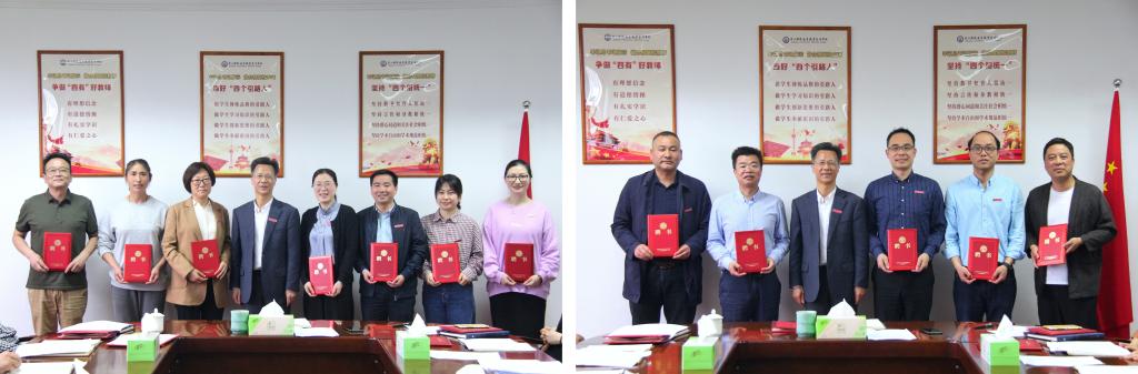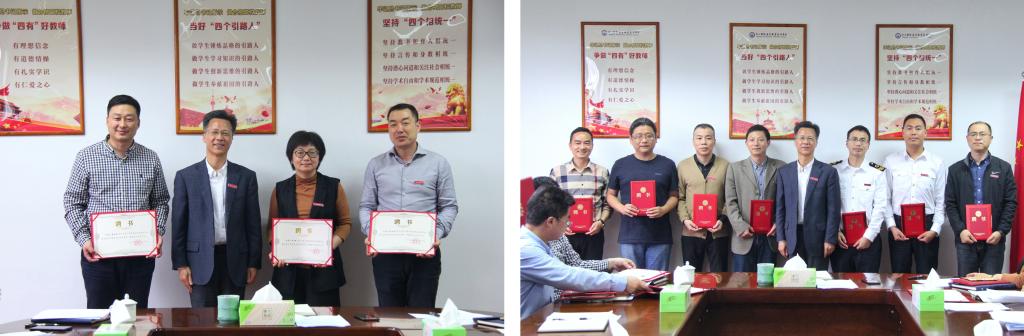 经全体委员投票选举,吴中平当选为第五届学术委员会主任委员,夏志刚、李丽、陈永芳当选为第五届学术委员会副主任委员。吴中平校长还为每一位委员颁发了聘书并合影留念。