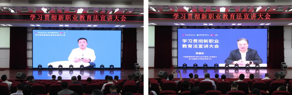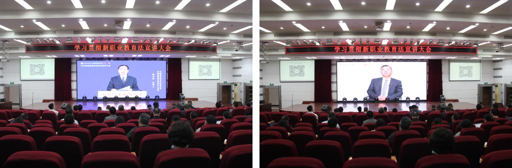 为深入贯彻落实全国职业教育大会精神,做好新职业教育普法工作,全面准确解读新职业教育法,持续推进依法治教、依法办学,扎实推动职业教育高质量发展,5月8日,中国高等教育学会以网络公益直播的形式举办“学习贯彻新职业教育法宣讲大会”,学校组织校领导、中层干部,岗位主管、专业(群)负责人,骨干教师等在图书馆四楼报告厅进行了聆听。