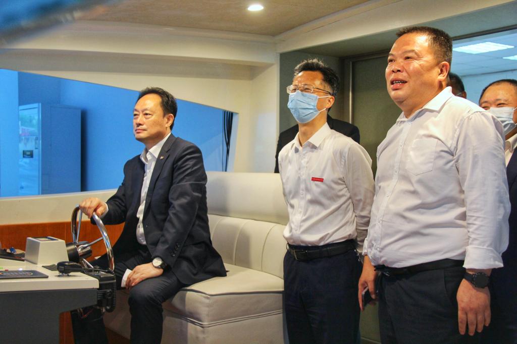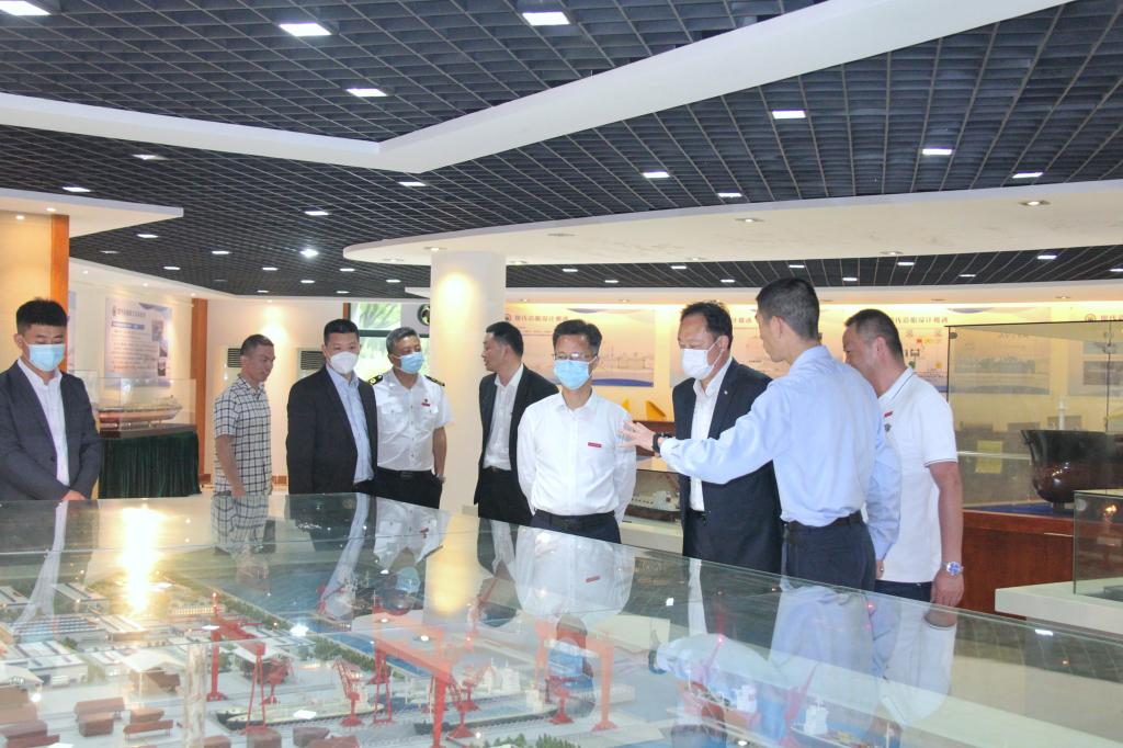 吴中平陪同谢春林一行参观了国家级现代航运虚拟仿真实训基地、综合实训基地、船舶知识馆等。(办公室)