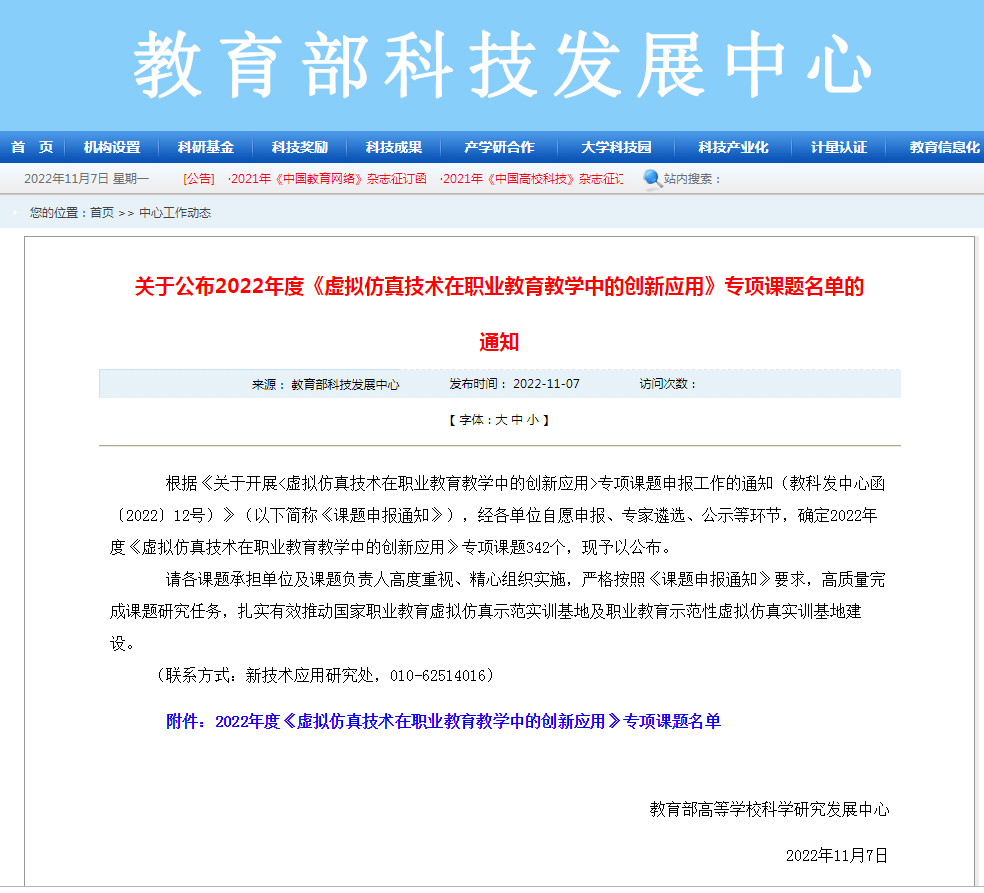我校课题获批教育部《虚拟仿真技术在职业教育教学中的创新应用》专项课题立项