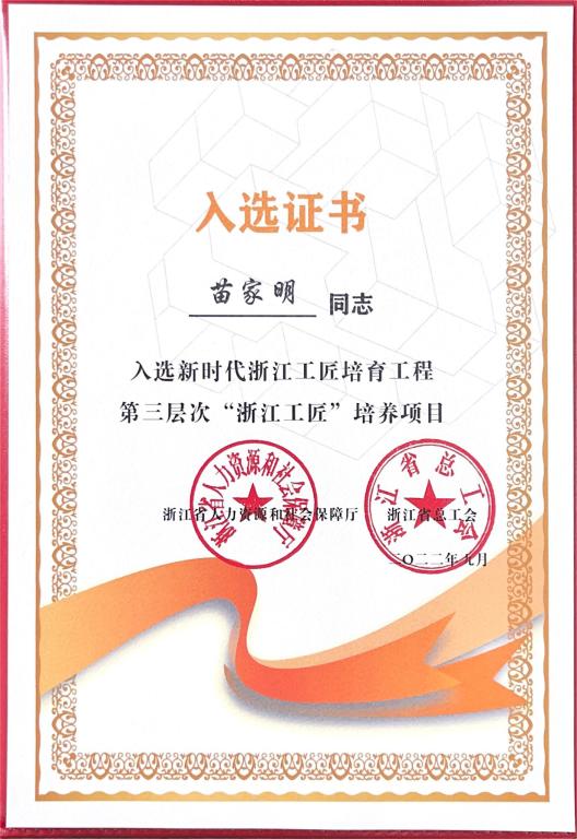 近期,浙江省人力资源和社会保障厅、浙江省总工会联合发文公布了2022年“浙江工匠”培养项目人员名单,我校海洋装备工程学院苗家明老师成功入选。