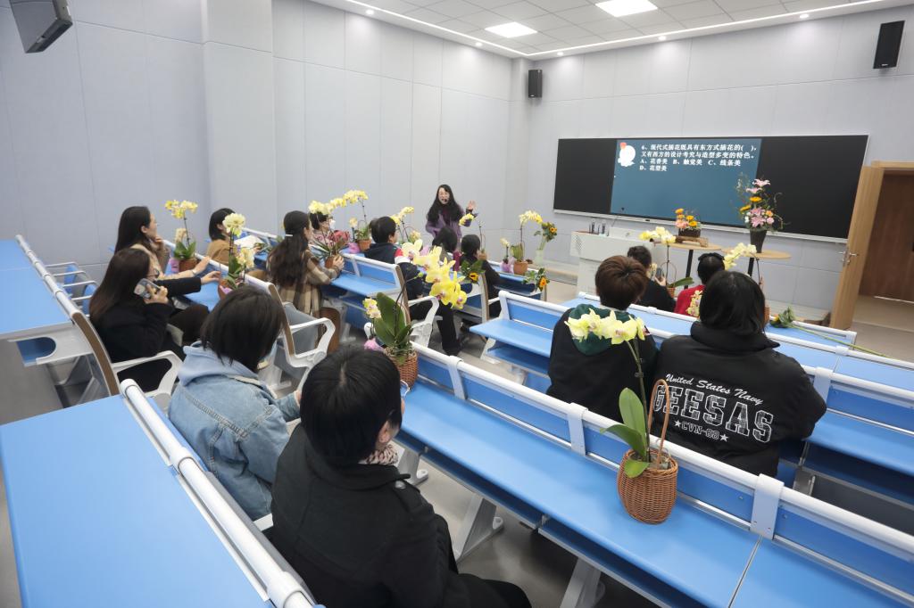 31日下午,学校妇联、工会邀请2022年全国巾帼文明岗、省高职院校教学能力比赛一等奖获奖团队等优秀女教职工代表和女大学生代表一起参加由海洋旅游学院翁名媛老师指导的“花趣共赏‘香’约春天”花艺活动。活动中,翁名媛老师从鲜花品种、色彩搭配、修剪造型等方面进行了讲解和趣味问答,同时,分享了“网红”蝴蝶兰绿翡翠、黄花、圣诞树的养护、温度和注意事项等。蝴蝶兰形态雅致百搭,寓意幸福美满,代表“好运兰”,为节日添上诚意满满又别致的祝福!