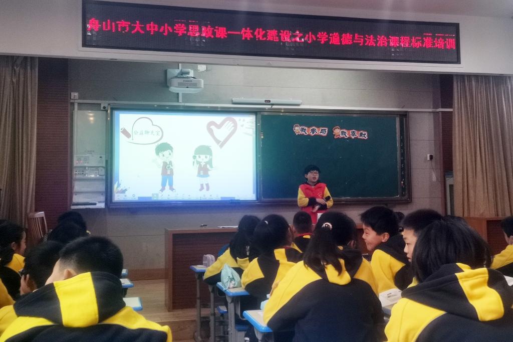 从描述身边的志愿服务事例,到涨红着脸争相举起小手申请成为志愿者,五年级(2)班40名学生群情振奋;从一袋零食的魔幻分类,到纷纷上台准确鉴别健康食品和垃圾食品,二年级(5)班36名学生欢呼雀跃;两堂思政公开课的内容设计和生动示范,赢得了现场观摩老师和专家的高度赞赏。这是3月21日上午,在舟山南海实验学校G4楼三楼多功能厅演绎的两节思政公开课。