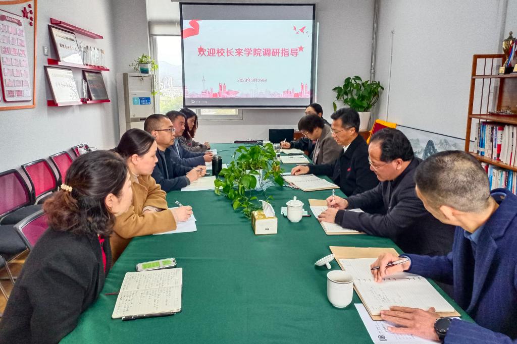 3月29日下午,校长吴中平一行到国际教育学院调研指导工作。党委副书记孔志光,副校长李丽,办公室、教务处等部门负责人陪同。
