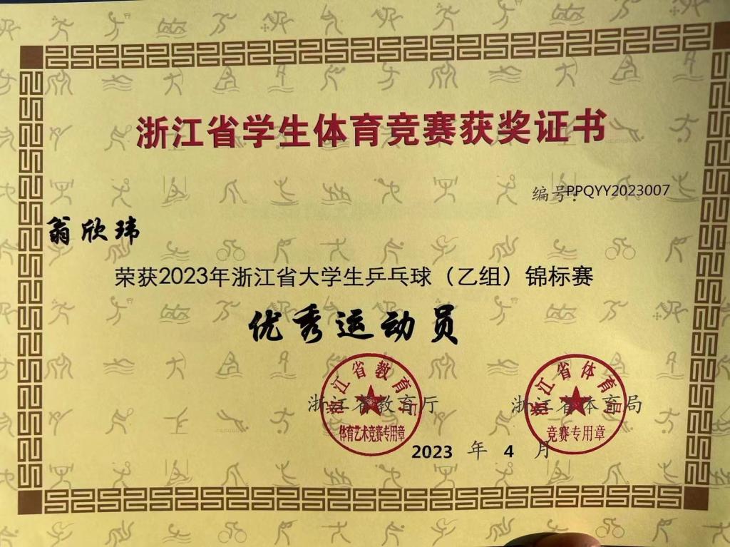 在教练包海丽老师的悉心指导下,我校海洋旅游学院2020级国际乘务管理专业的翁欣玮同学参加了男子单打赛项。比赛中,翁欣玮同学与来自全省的37名选手同台竞技,不畏强手,沉着冷静,做到每球必争,凭借永不放弃的拼搏精神,五战四胜,最终荣获第五名的好成绩,并获得“优秀运动员”称号,创造了我校在省级乒乓球个人比赛的最好成绩。(文化体育部)