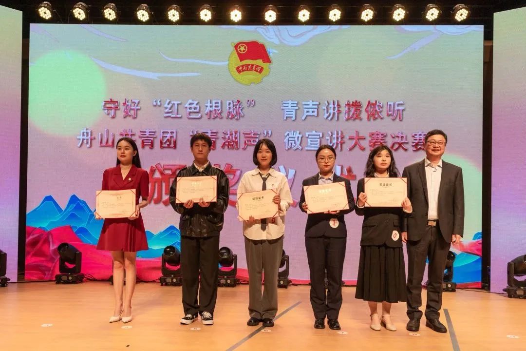 本次大赛前期共征集到宣讲视频80余个,经过海选,我校国际教育学院陈林怡入围决赛。当天晚上,11名来自全市各行各业的青年宣讲员齐聚一堂,分享自己对工作生活的感悟。陈林怡以“忆往昔青年壮举,看今朝吾辈奋进”为主题,紧扣走好当代青年一代的奋斗之路为主线,结合我校优秀青年学子鲜活事例,用饱满的热情和质朴的语言,从不同角度、不同层面,声情并茂、激情澎湃地展现了新时代青年的理想信念和责任担当。经过激烈比拼,陈林怡荣获优胜奖,并被被聘请为舟山市共青团“809000——青潮声”宣讲员,学校团委因前期统筹组织给力、视频质量过硬荣获最佳组织奖。