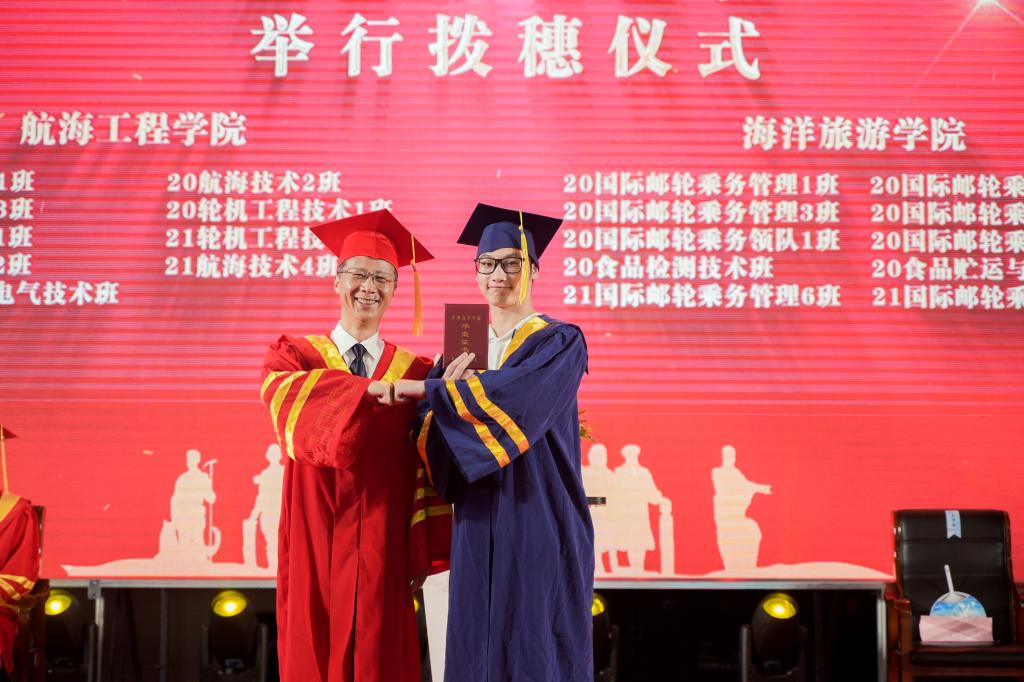 毕业生代表们用歌声表达了自己的喜悦之情、不舍之情和感恩之情,青春活力的气氛盈满了会场。毕业视频《启航2023》带同学们回顾了在海运三年的点滴。