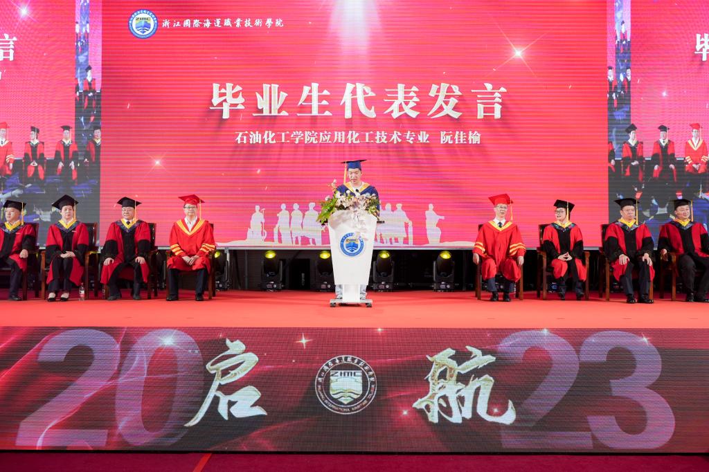 省级优秀毕业生、国家奖学金获得者,石油化工学院应用化工技术专业阮佳榆同学分享了自己三年学习成长感想,深情表达了对母校培养的感恩之心,代表2023届全体毕业生表达了对老师、同学的深厚情谊和对母校的美好祝愿。