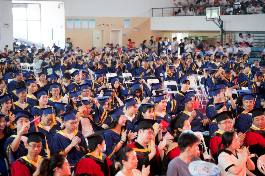 6月19日,学校2023届学生毕业典礼在体育馆隆重举行。校领导苏为泽、吴中平、李丽、张谷燕、刘相、曹志斌、夏志刚、黄承、陈永芳,各二级学院和部门负责人、教师代表、企业代表、校友代表出席仪式,共同见证2023届毕业生完成学业,踏上新的人生征程。校党委副书记孔志光主持仪式。