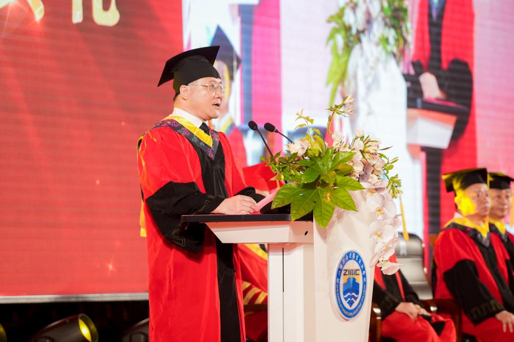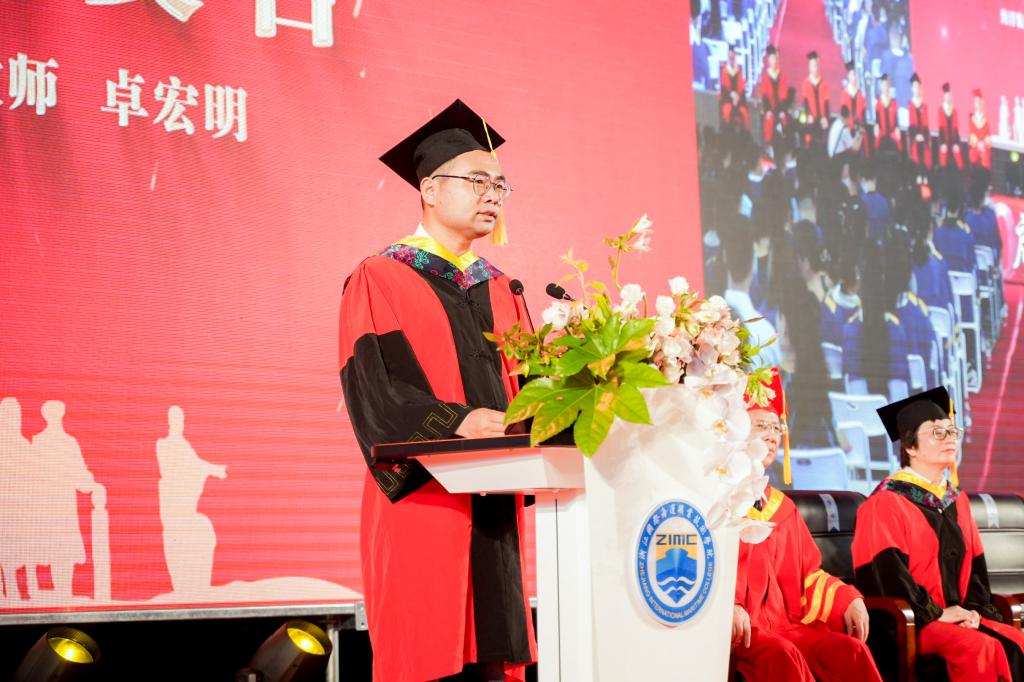 教师代表、海洋装备工程学院卓宏明老师在发言中对同学们寄予了殷切期望和诚挚祝福。“你们是最年轻最有朝气的青年,更应坚守初心、勇担时代使命,砥砺前行、传承时代精神。”他衷心建议每一位毕业生坚定理想、厚植家国情怀,砥砺奋进、担当有为,学无止境、上下求索,希望全体毕业生不负韶华行且知,大有作为正当时!