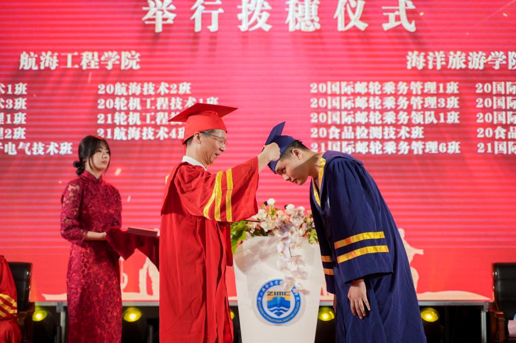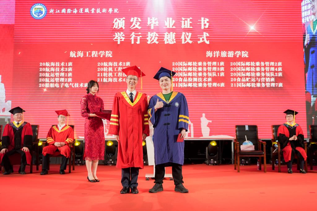 伴随着青春激扬的音乐,毕业生代表们依次走上主席台,从吴中平校长手中接过毕业证书、拨穗正冠。