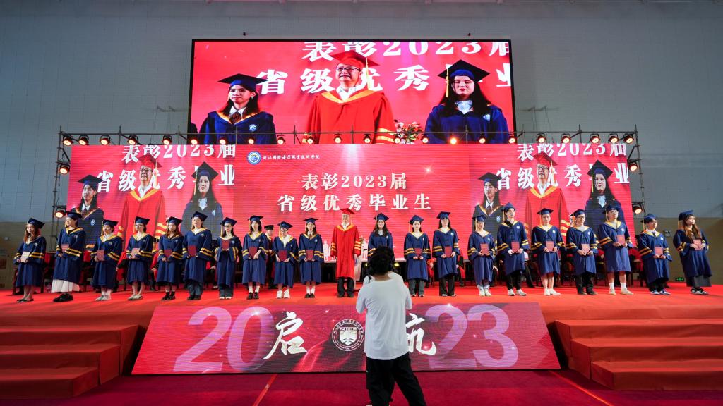2023届毕业生是亲历学校抢抓机遇、提质培优的一代。同学们精进技能、拼搏赶超,经历了考验,战胜了困难,交出了令人满意的成绩单。毕业生中有108位同学获得国家励志奖学金;129位同学获得省政府奖学金;66位同学荣获省优秀毕业生称号。党委书记苏为泽为2023省级优秀毕业生代表颁发了荣誉证书。