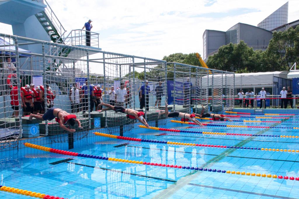 铁人三项接力是大比武中最具观赏性、竞技性和实用性的赛事。每支参赛队派出5名选手进行游泳50米、拖带15公斤重的模拟溺水橡皮人回游50米和攀越救生绳网三个项目接力,拼的是选手们的体力和毅力。此起彼伏的呐喊声、欢呼声中,18支航海院校队的选手们在水中奋勇争先,上演了一场场争分夺秒的“海上救援”。经过激烈的角逐,大连海事大学、江苏航运职业技术学院、上海海事大学摘得比赛院校组的冠亚季军,我校获得了院校组第9名的好成绩。
