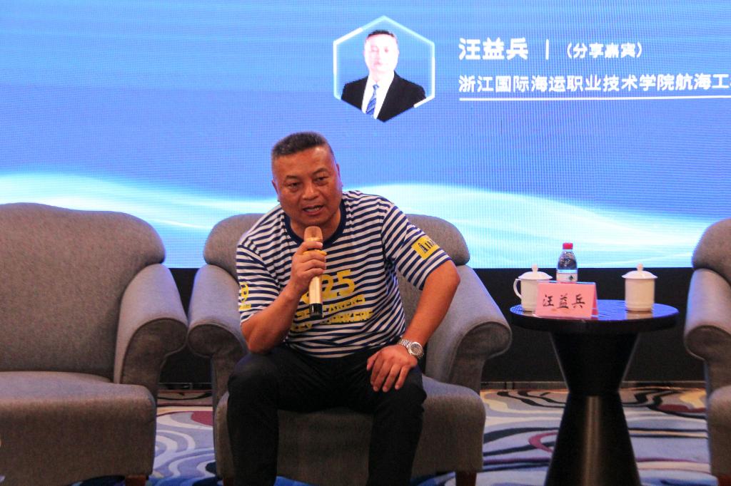 航海工程学院院长汪益兵以“成长”为主题,介绍了学院海员人才培养的基本情况,特别分享了学院在帮助海员成长方面的经验做法,助力海洋强国建设。