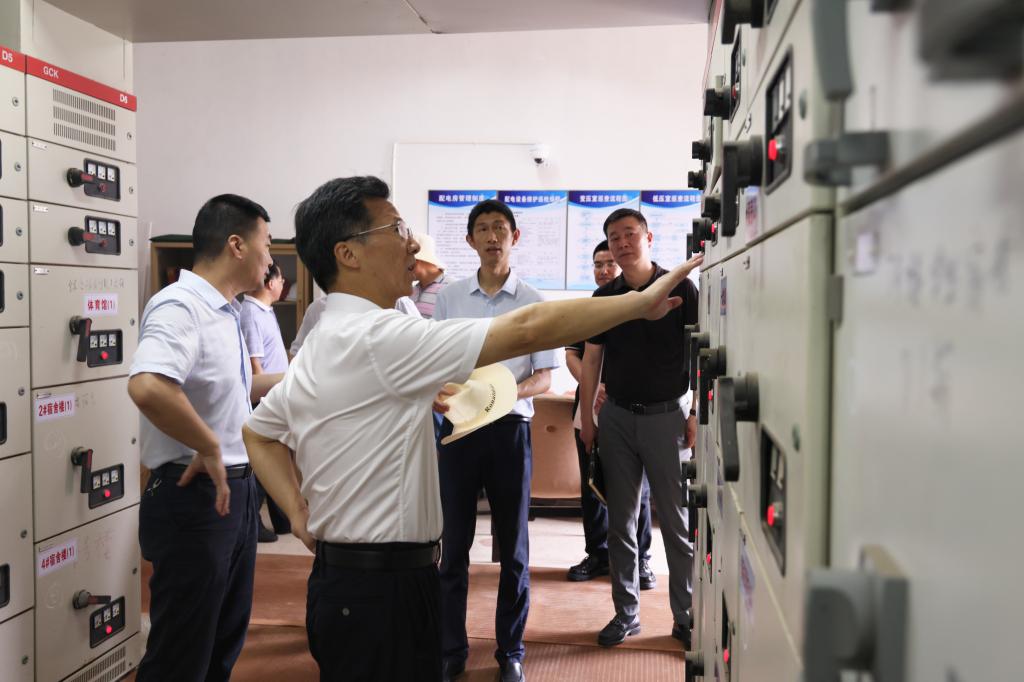 在高配房,吴中平校长指出每一台变配电装置都需要做好明确的标志指示,做到规范化管理。