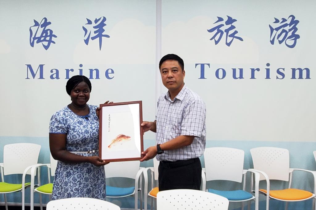 欢送会由海洋旅游学院院长俞海平主持,在欢送会上,项目组组长张泽凌对项目从理论学习、现场教学、文化交流、实地考察、试课观摩等方面进行了全面回顾,项目组成员们纷纷回忆了此次培训的点滴,一致认为通过这段时间的培训,塞舌尔教师学员已经充分融入了我校。两位塞舌尔教师学员MARCLUCILLE也表达了对于项目组成员们的感谢以及对于我校的感激之情并向学校赠送了礼物。他们还表示,要把在我校的宝贵经历带回塞舌尔,为塞舌尔的教育事业发展做出贡献。