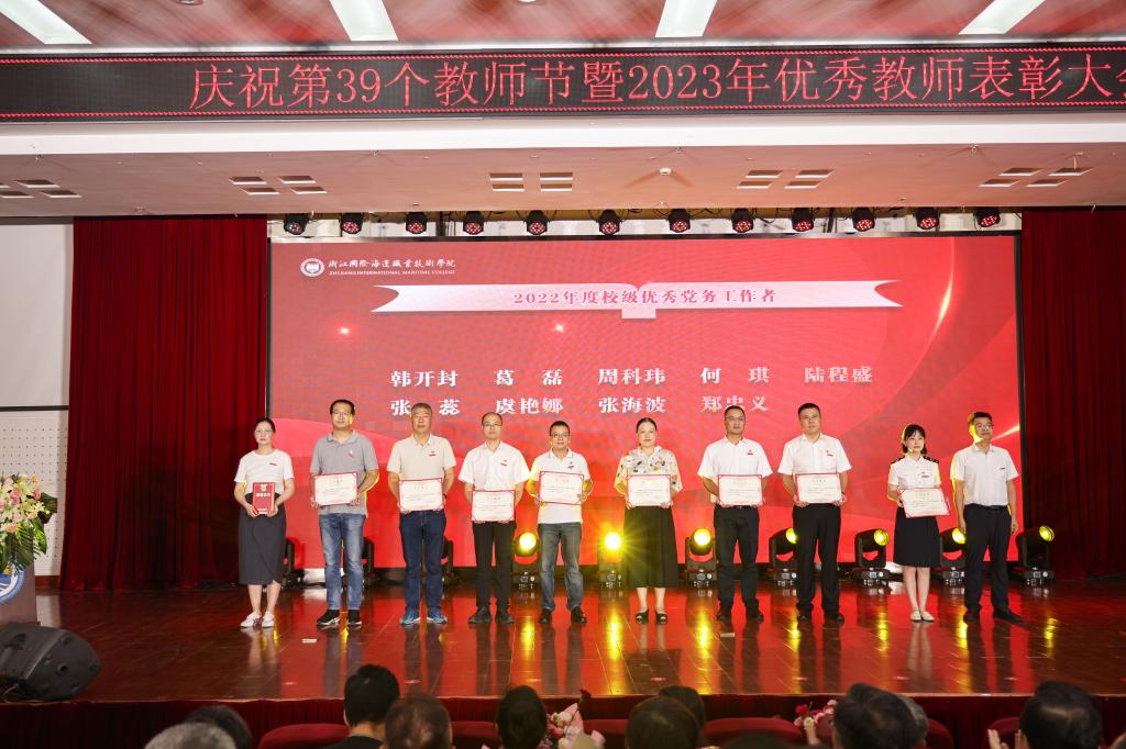会议为2022年度校级先进基层党组织、校级优秀党务工作者、校级优秀共产党员以及学校第三届“最受师生喜爱的书记”等先进进行了表彰。