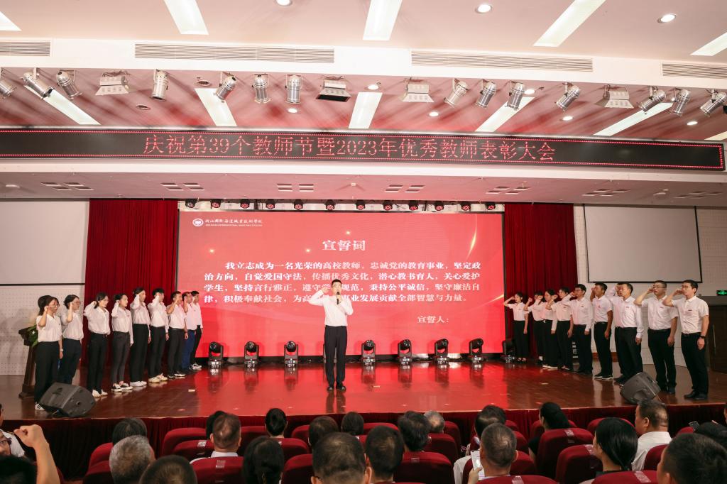 传道授业,晦之不倦。芳华岁月,铸以匠心。9月8日上午,学校庆祝第39个教师节暨2023年优秀教师表彰大会在图书馆四楼报告厅举行。今年教师节的主题是:躬耕教坛,强国有我!校党委书记苏为泽出席大会并讲话,副校长李丽主持大会。校领导、全体教职工、部分退休教师代表参加大会。