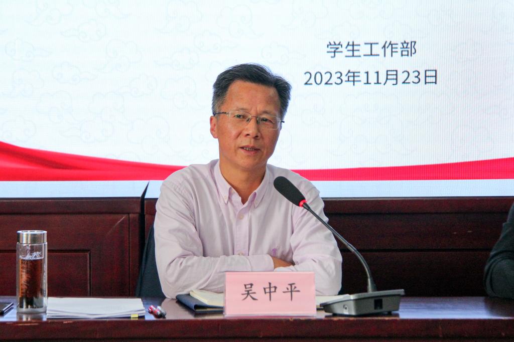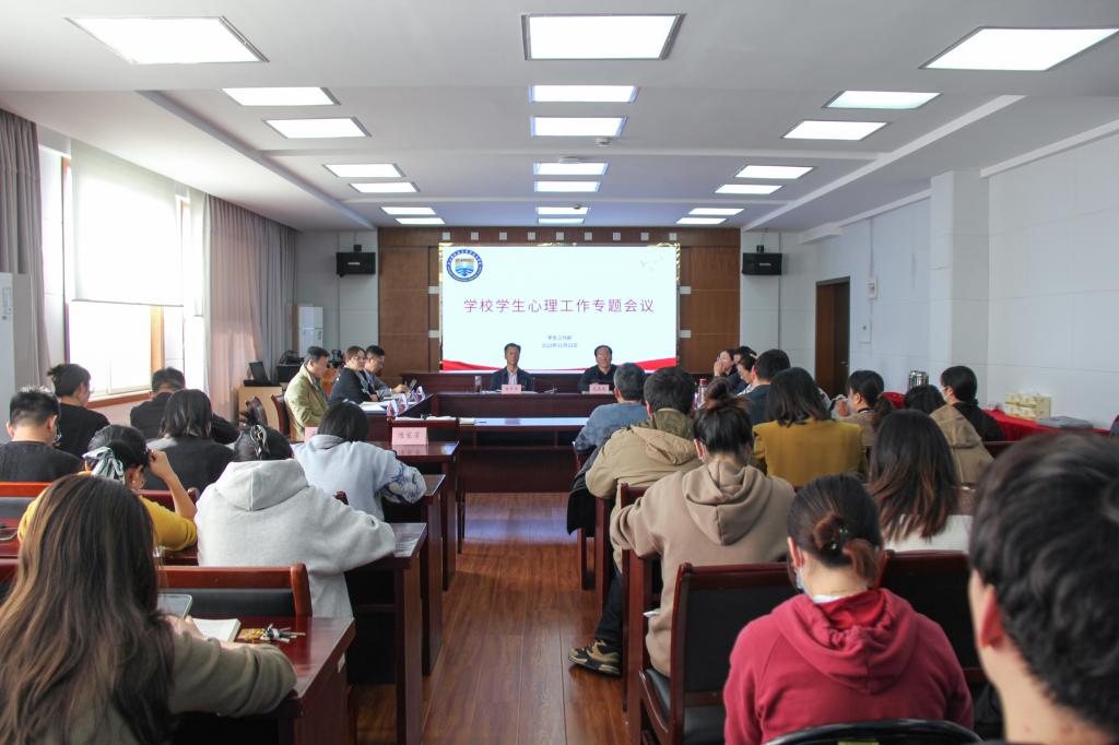 为全面了解我校2023级新生的心理健康状况,对学生可能存在的心理问题早发现早干预,并提供有针对性的帮助、引导新生以良好的心理状态投入到大学的学习与生活中去,同时结合我校“让爱来,让碍走——179一起走”学生心理健康教育品牌的工作安排,11月23日,学工部召开了学校学生心理工作专题会议。校长吴中平、党委副书记孔志光、学生处全体人员、学校专兼职心理健康教育教师、各二级学院书记、副书记、全体辅导员共同参会。