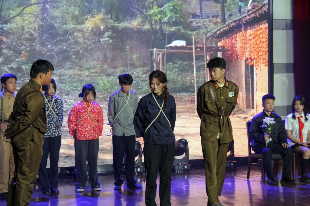 机关党总支的《丰碑》演绎了红军行军途中,一位军需处长舍己为人的感人故事。校艺术团带来歌曲《如愿》,用歌声呈现了在世代中国人的奋斗与传承中,祖国日益强大之景。