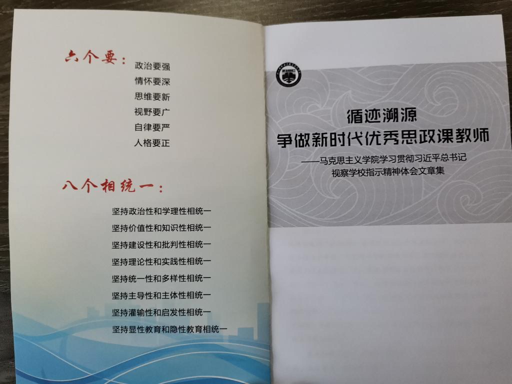 《循迹溯源 争做新时代优秀思政课教师》近期由马克思主义学院汇编成集。为推动学习贯彻习近平新时代中国特色社会主义思想主题教育走深走实,根据学校党委要求,9-11月,马克思主义学院全体思政课教师专门撰写学习体会文章,校党委书记苏为泽为该集题序。
