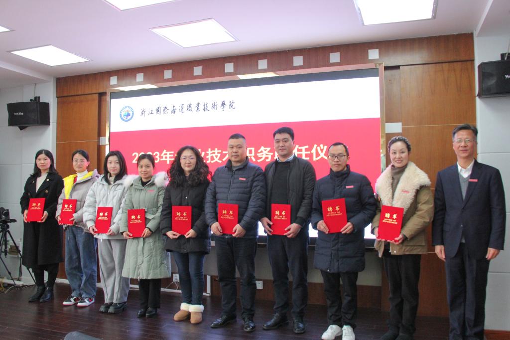 吴中平校长为专业技术职务晋升教师颁发证书。受聘人员接过的不仅是荣誉,更是责任和担当,承载着海运的希望和未来。