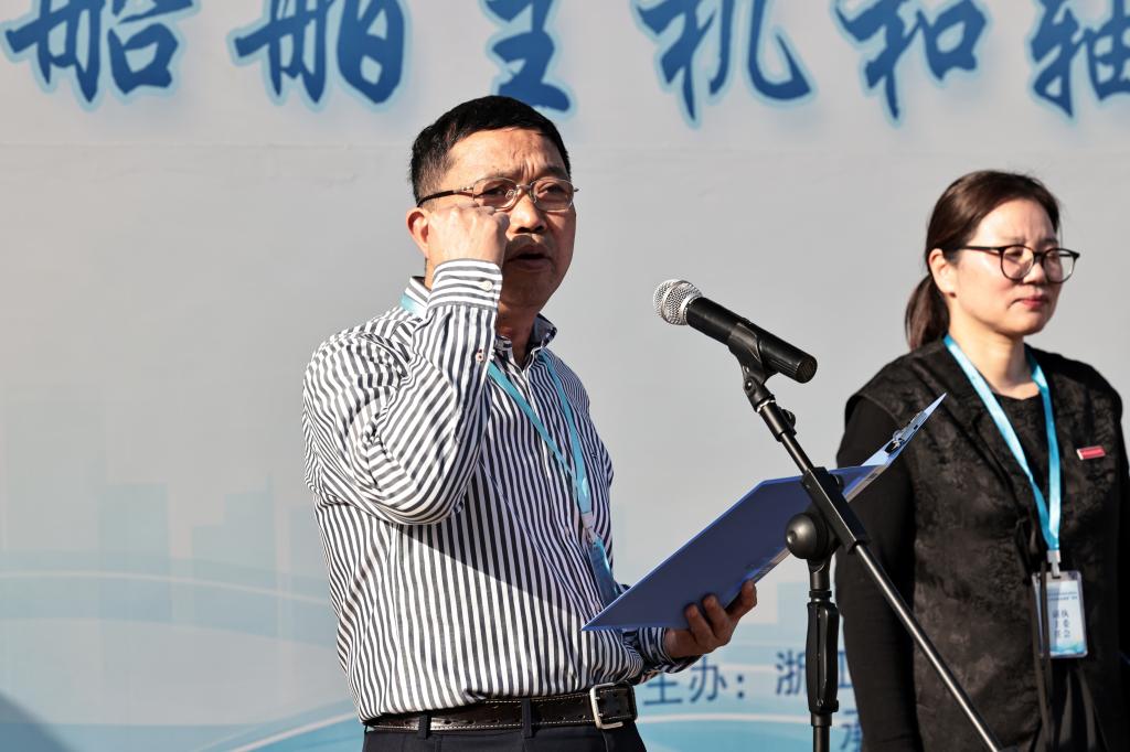 3月29日,2024年浙江省职业院校技能大赛“船舶主机和轴系安装”赛项开幕式在我校国际海员培训楼一楼小广场举行。赛项专家、仲裁长浙江海事局船员考试中心调研员任德夫,校党委副书记孔志光,教务处处长郑燕华,海洋装备工程学院党总支书记罗秀峰、副院长何琪等出席开幕式。开幕式由教务处副处长郭娟主持。