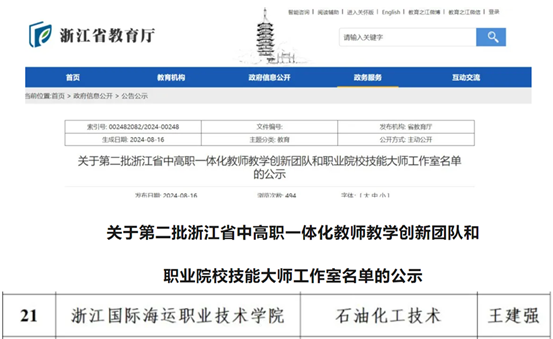 近日,浙江省教育厅公布第二批中高职一体化教师教学创新团队名单,学校石油化工技术专业团队成功入围。