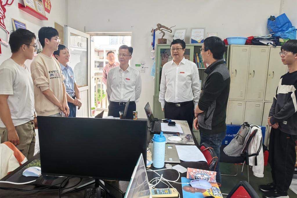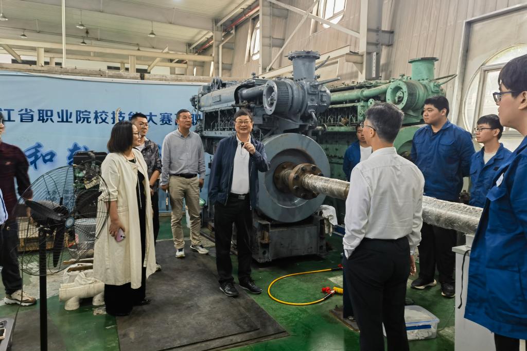 2024年世界职业院校技能大赛各赛项将于10月底陆续拉开帷幕。经过奋勇拼搏,我校三支队伍将代表浙江省参加“电子商务” 赛项(高职组)、“智能飞行器应用技术(高职组)”“船舶主机和轴系安装调试”赛项(高职组)。为切实做好备赛工作,10月21日和10月22日上午,校党委书记苏为泽和校长吴中平前往船舶实训楼和海德楼分别看望慰问了正在紧锣密鼓备战大赛的师生团队,并进行了赛前动员。