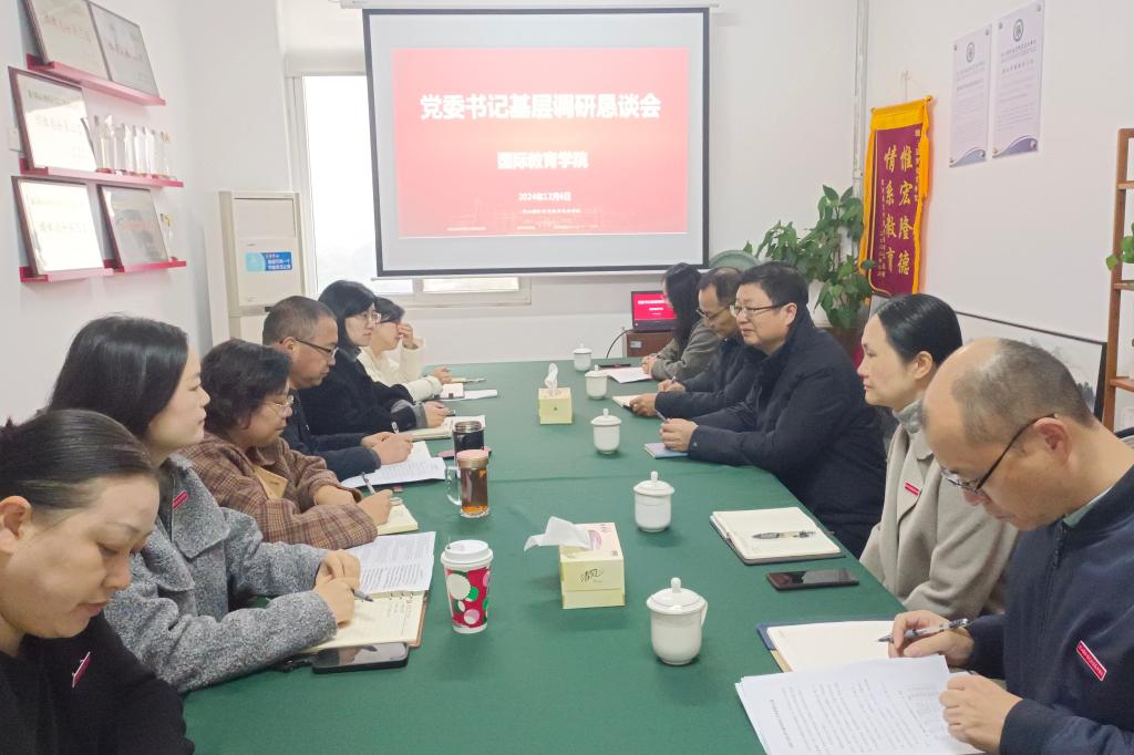 12月6日,校党委书记苏为泽到国际教育学院开展调研,校党委委员、组织部部长张海波,学工部、教务处、科研与合作处等部门负责人陪同调研。国际教育学院党政班子、团队负责人出席会议。