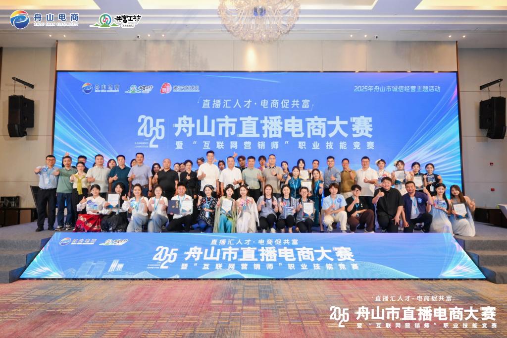 6月19日,2025年舟山市直播电商大赛在舟山财富大酒店圆满落幕。本次大赛由舟山市商务局、市人力资源和社会保障局、市农业农村局、市市场监督管理局联合主办,以“直播汇人才,电商促共富”为主题,旨在挖掘培育电商新锐力量,助力数字经济与实体经济深度融合。全市共有57支参赛队伍(含30支社会组、27支学生组)同台竞技。