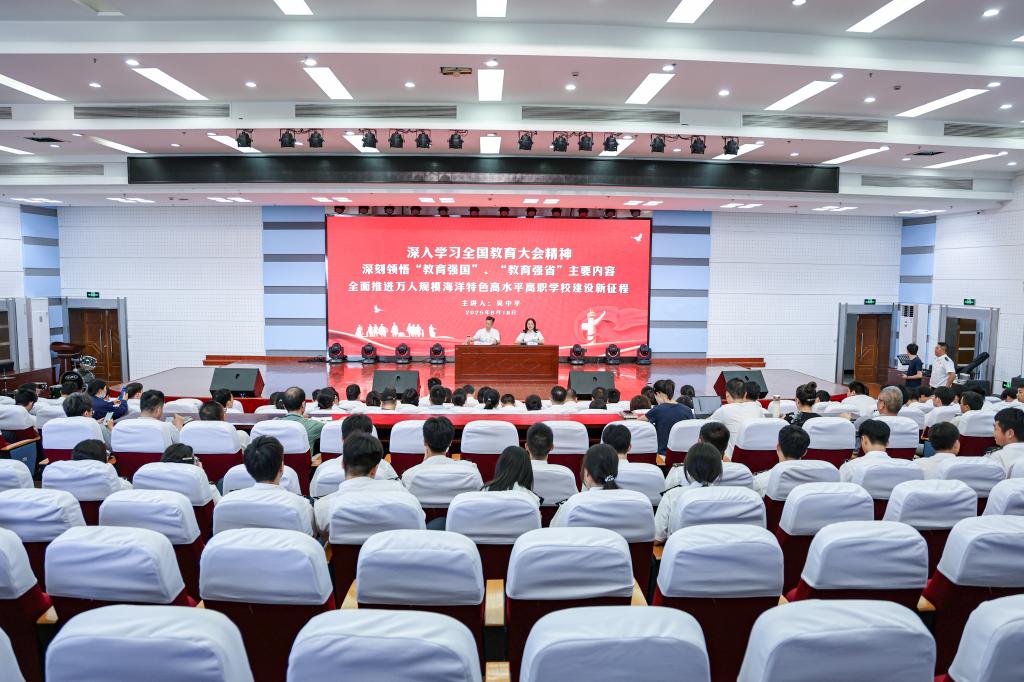 为深入学习贯彻习近平总书记关于教育的重要论述和全国教育大会精神,落实《教育强国建设规划纲要(2024—2035年)》部署,6月18日,校党委副书记、校长吴中平在图书馆四楼报告厅讲授了《深刻领悟“教育强国”、“教育强省”主要内容,全面推进万人规模海洋特色高水平高职学校建设新征程》专题党课。航海工程学院全体教职工,各二级学院副院长、各专业负责人及部分学生代表参加党课学习。