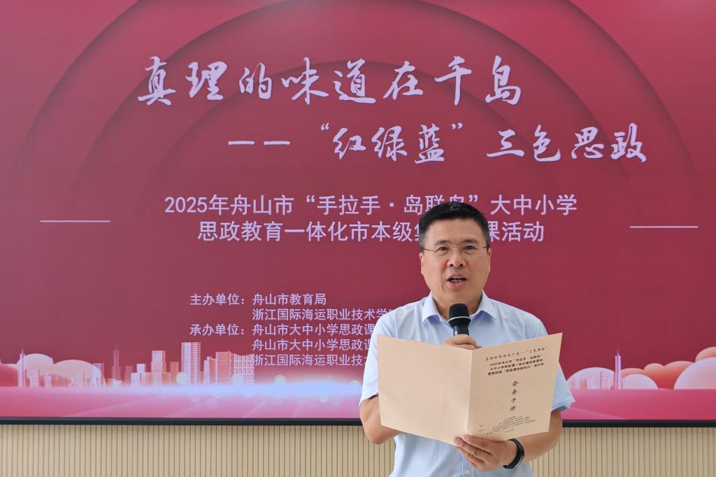 专家点评阶段。应邀专程前来指导备课会的杭州师范大学马克思主义学院王康教授指出,大中小思政课一体化建设的重点是思政课堂,各学段一体化不是简单的课程衔接,而是育人生态的重构,期待舟山继续以“海纳百川”的胸怀在教材共编、师资共育、基地共建等方面不断探索创新,让思政课真正成为照亮学生精神世界的灯塔,为大中小思政课一体化建设提供可复制的成功经验。曾获全国高校思想政治理论课教学展示活动一等奖的义乌工商职业技术学院思政理论部主任赵勇认为,从现场老师们的展示可以看到,舟山依托“红蓝绿”三色资源禀赋,创新构建了特色鲜明的大中小学思政教育体系,在各学段之间已经初步构建起纵向衔接、横向贯通的思政教育新常态;这种兼具海“韵”气质与海“味”特色的舟山范式,让区域大中小学思政课一体化建设大有可为。浙江省特级教师、浙派名师、舟山技师学院党委书记方军建议,要把集体备课会作为关键抓手,充分发挥其在教学能力提升、方法创新、资源共享方面的平台作用,通过常态化、主题化、特色化的集体教研活动,促进各学段思政教师协同发展,构建循序渐进、螺旋上升的一体化育人体系。