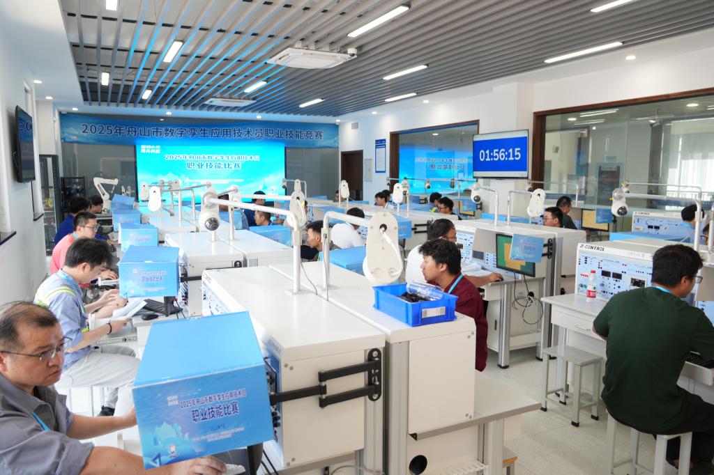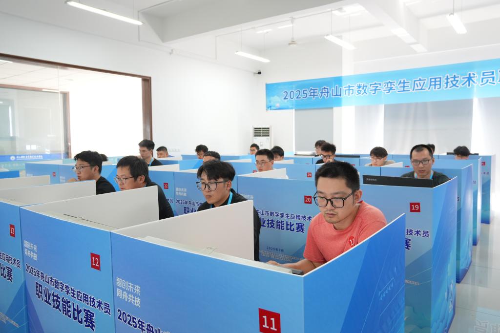 7月5日,由舟山市人力资源和社会保障局、舟山市经济和信息化局舟山市总工会,我校承办的“智创未来、同舟共技”2025年舟山市数字孪生应用技术员职业技能竞赛如期举行!