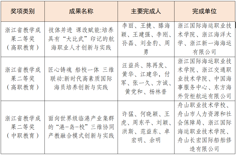 其中,由我校李丽教授主持的《技体并进 课改赋能:培养具有“大比武”印记的航海职业人才创新与实践》,以及汪益兵教授主持的《匠心铸魂 船校一体 三维联动:新时代高素质国际海员培养创新与实践》双双斩获二等奖。这两项成果均紧扣高素质航海技能人才培养核心目标,集中展现了近年来学校在深化产教融合、推进课程改革、弘扬工匠精神等方面的探索成果,形成了具有鲜明海运特色的育人模式与改革路径,为行业人才培养提供了可借鉴的实践经验。