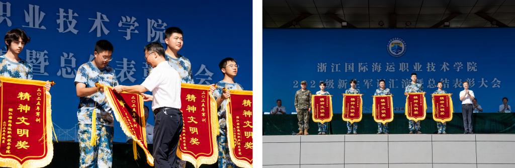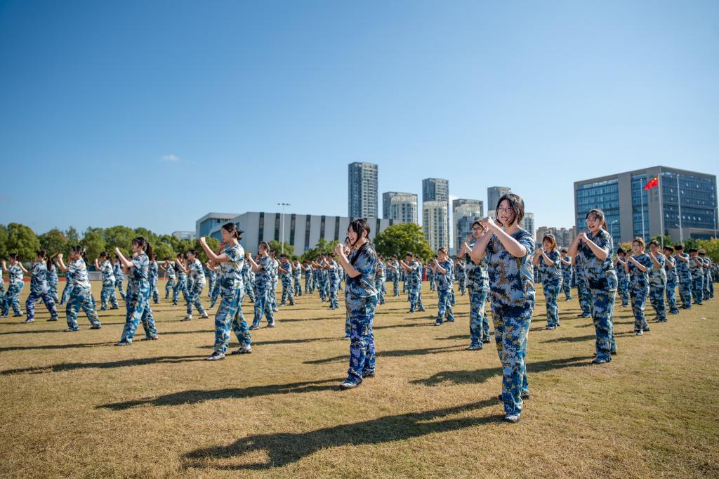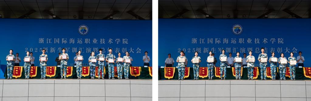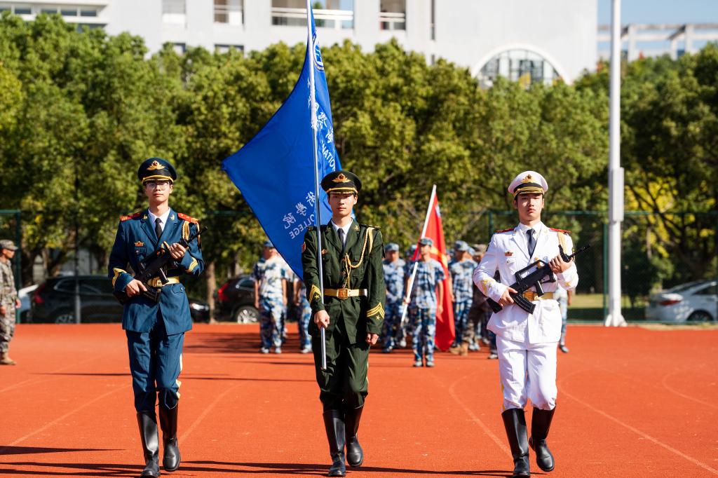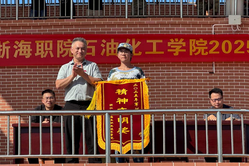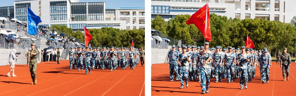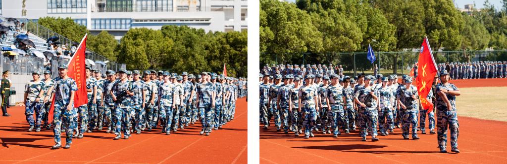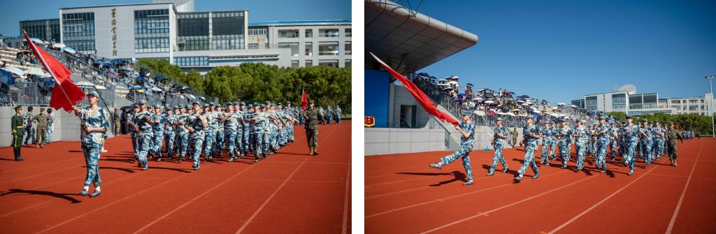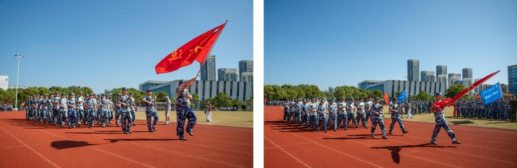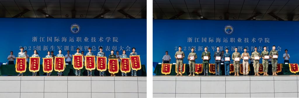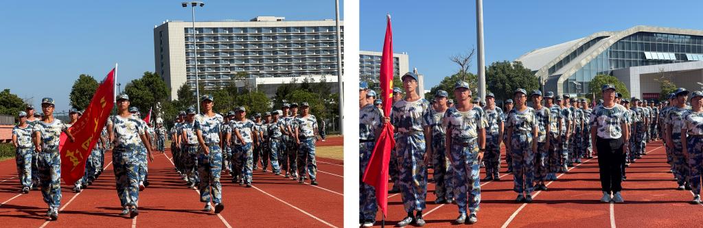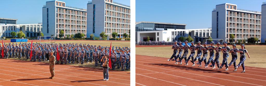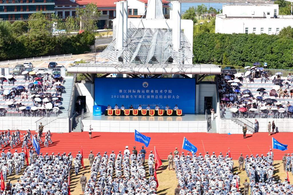石油化工学院在岱山校区同步举行2025级新生军训汇演和总结表彰大会。(文/马露瑶 图/孙磊)