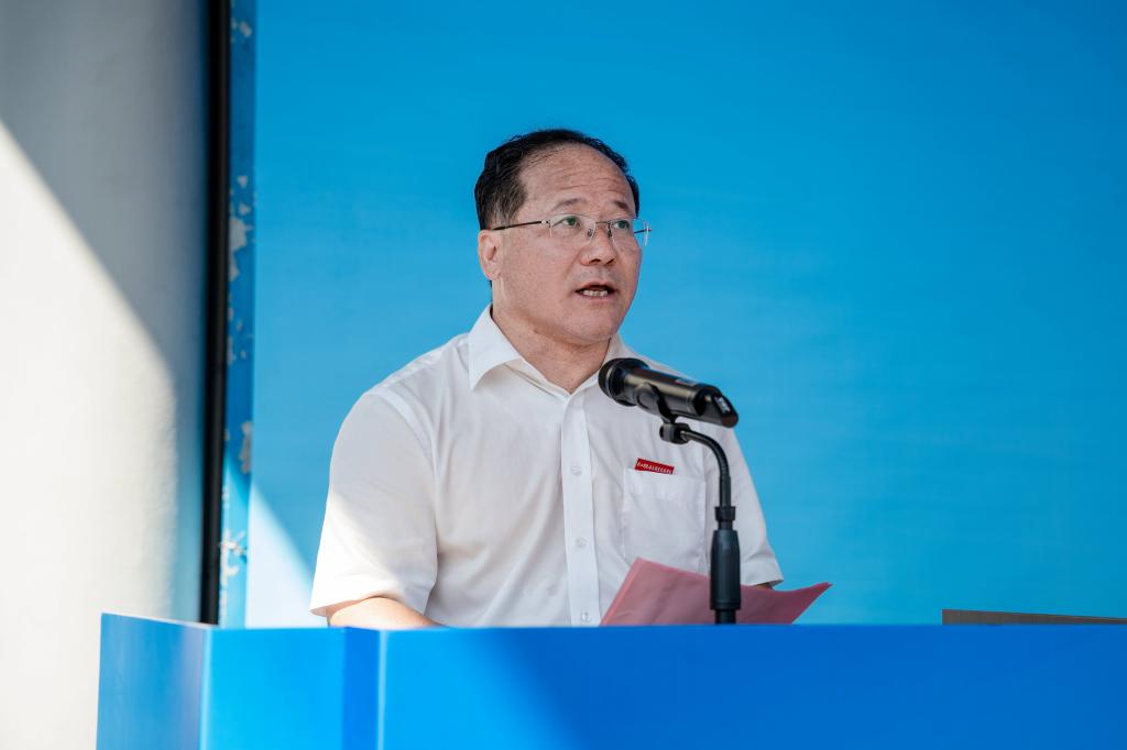 孔志光副书记在讲话中向承训部队领导与教官致以崇高敬意,向参训全体老师表达亲切慰问,向全体参训同学致以最热烈的祝贺。他希望同学们在接下去的学习生活中以饱满热情、坚定信念、不懈努力迎接挑战:一是永葆赤子之心,做红色基因的传承者,将军训中汲取的精神养分,转化为“强国有我”的使命担当;二是锤炼坚强意志,做人生高峰的攀登者,用军训中培育出的不畏艰难、一往无前的优秀品格,去克服今后学习、生活中的一切挑战;三是锻造强健体魄,做知行合一的践行者,将军训养成的良好习惯延续到日常学习生活中,让运动场成为第二个课堂,让图书馆成为精神家园。